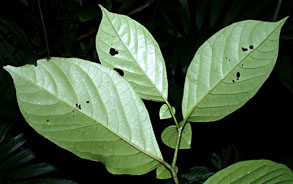 Herbivores. Pollinators. Bees Seed dispersers. Bats? Comments. Much less common than Cuatresia riparia. Generally the leaves are larger, but the minor leaves very small. Voucher No. Haber 9300 |